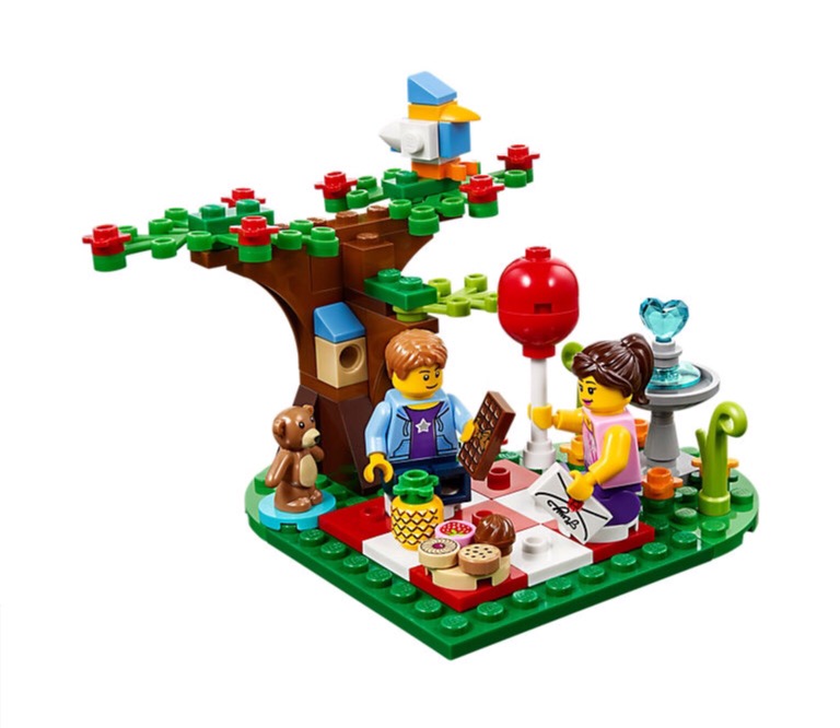 #40236 Romantic Valentine Picnic is available now on Shop@Home. €9.99 gets you 126 pieces, including some interesting ones like the chocolate bar, pineapple and green bottle, and also some nice plant pieces – a six stem plant and 2 curly stems.