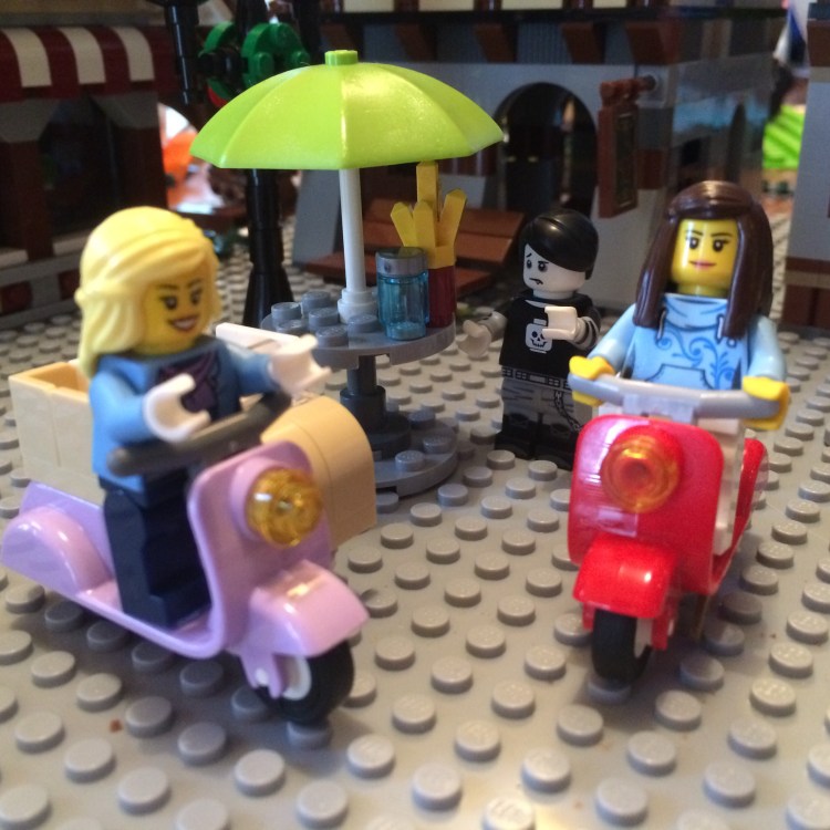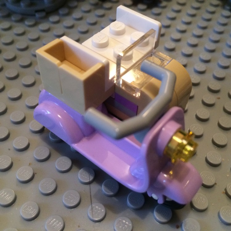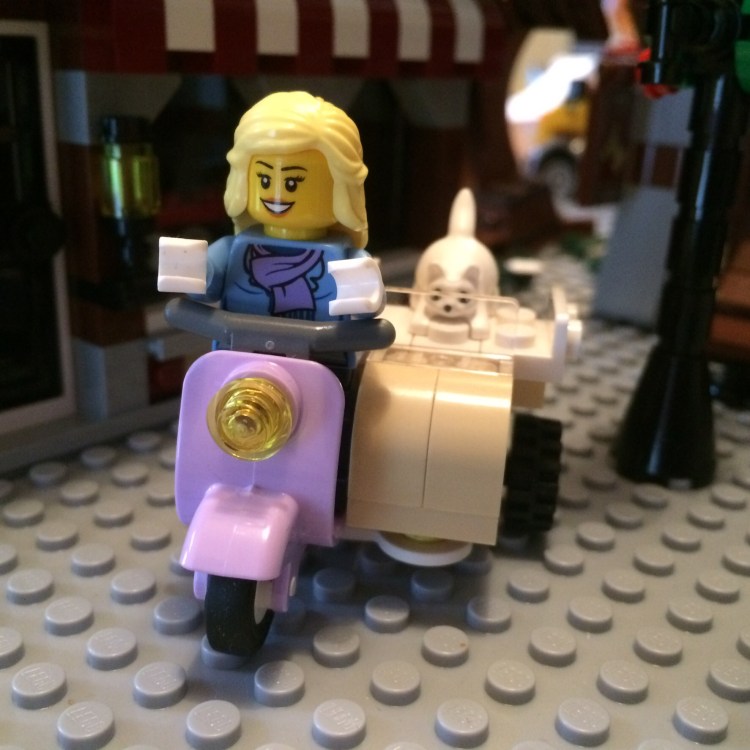 I bought this set just for the scooter. (I know, I know I could have Bricklinked it for about €2…but I didn’t). I loved the lavender colour of the scooter, but not the bright green of the sidecar. So I gave it a tan sidecar.