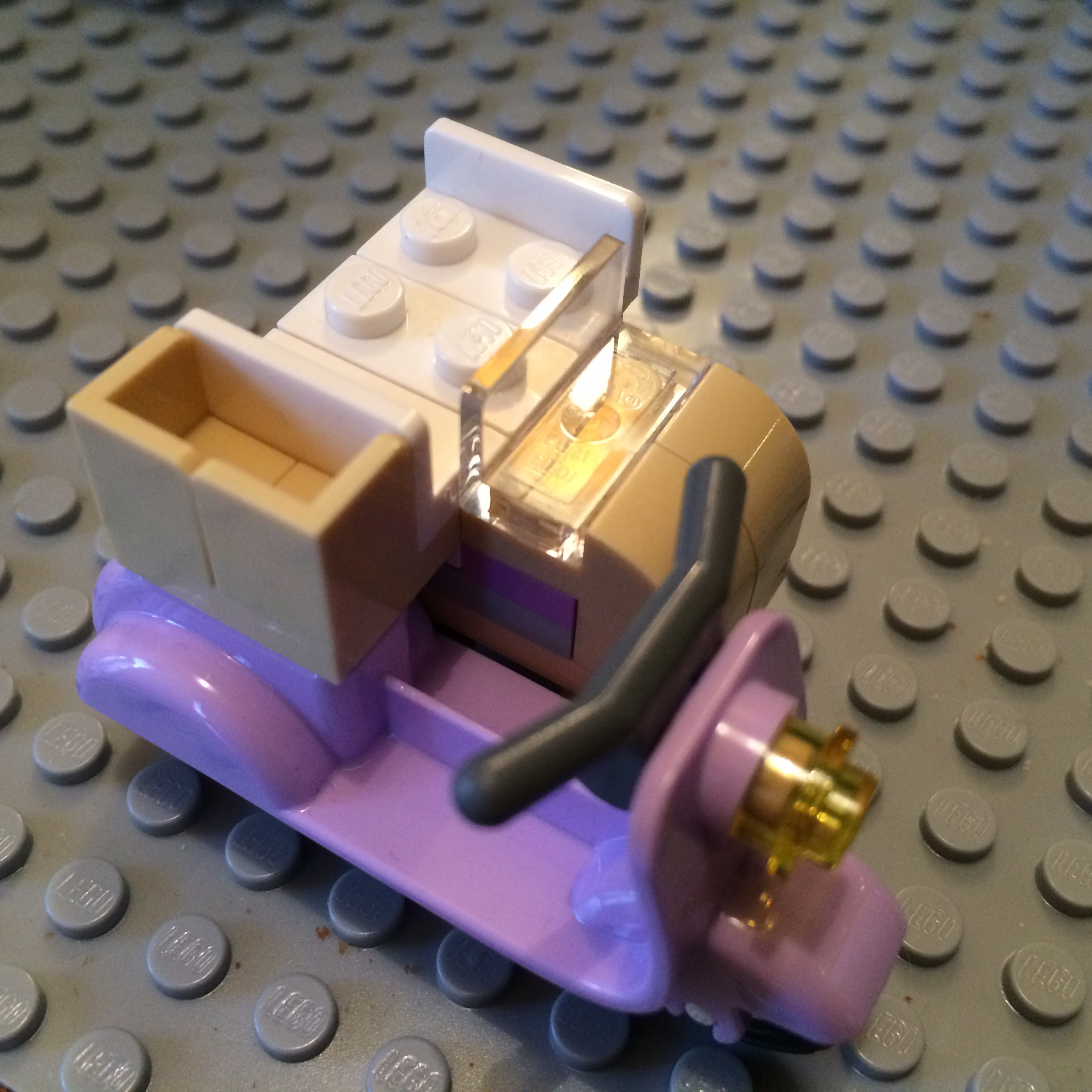 I bought this set just for the scooter. (I know, I know I could have Bricklinked it for about €2…but I didn’t). I loved the lavender colour of the scooter, but not the bright green of the sidecar. So I gave it a tan sidecar.