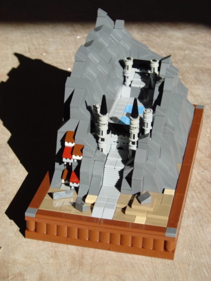 Sweeping turrets, houses clinging to the side of a rocky precipice, steps leading up to the arched entrance to the castle fortress – all packed onto 14×20 studs.