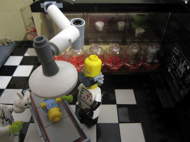 Not only does this build look good on the outside, but inside it’s absolutely jam packed with details….and even has a storyline involving Harley Quinn, The Joker and experiments on bunnies.