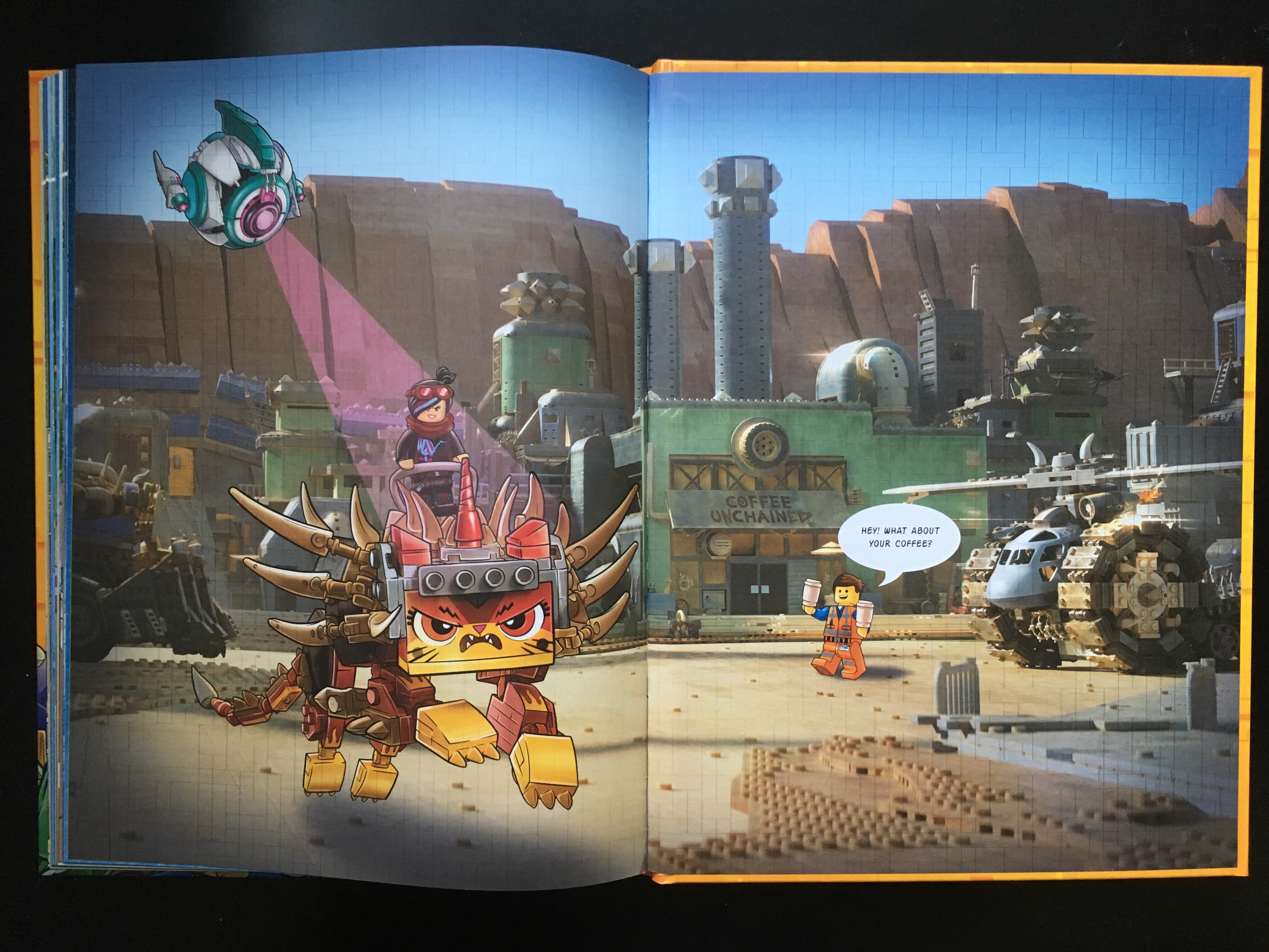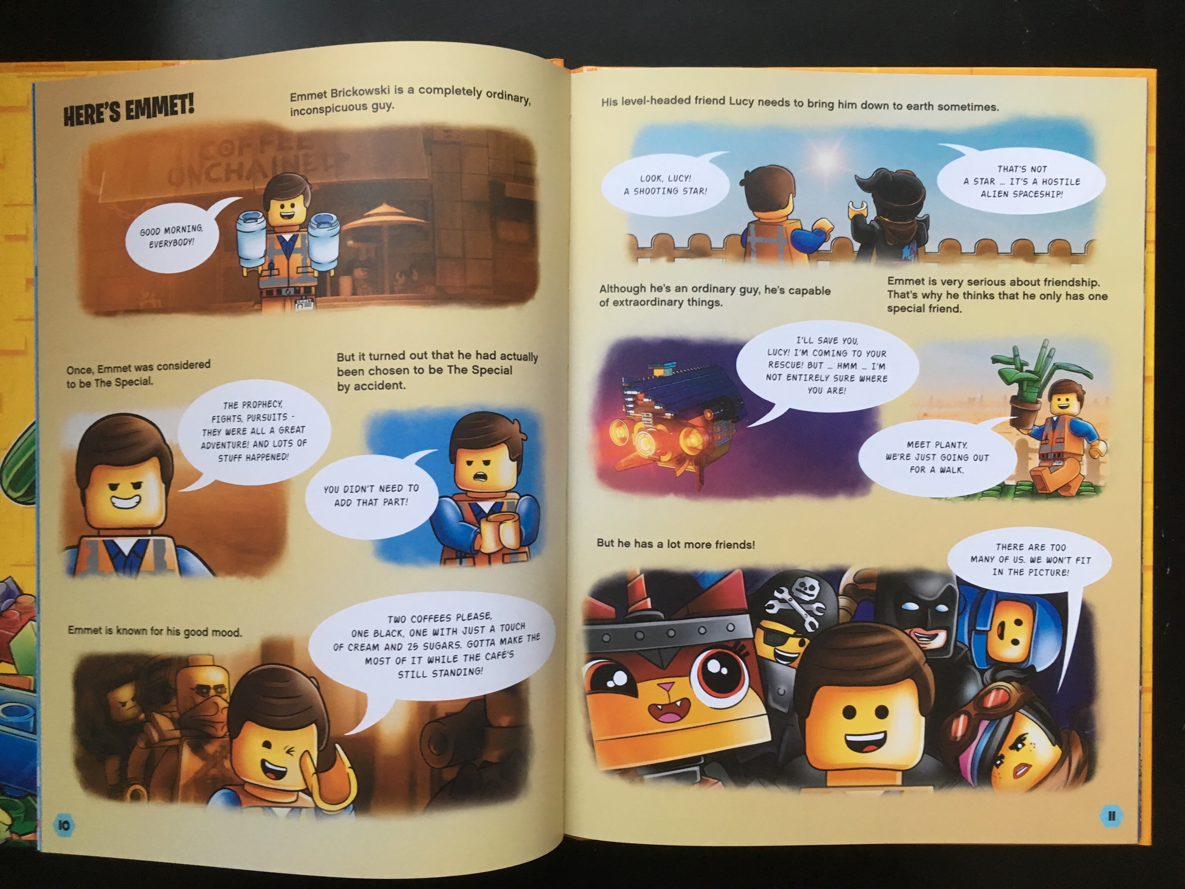 The annual comes with an Emmett minifigure and 2 coffee cup pieces.