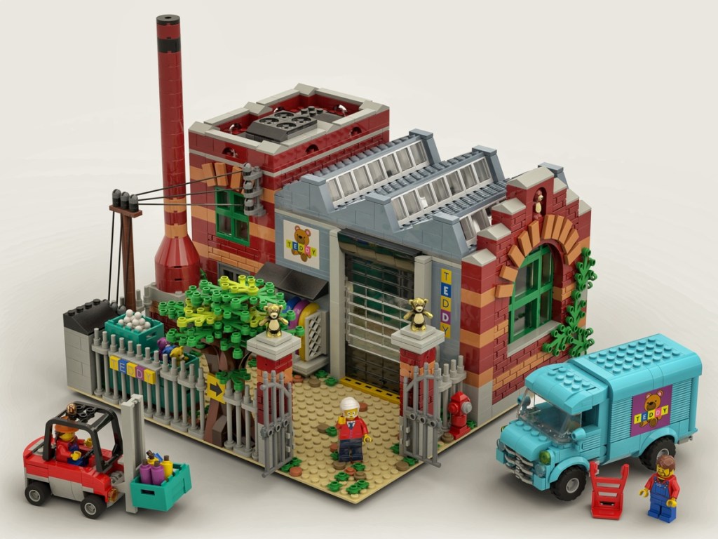 The set is inspired by old industrial buildings that can be seen in the north of France. However, the central part of the factory was rebuilt in a modern style. The set resembles a real factory thanks to a plausible assembly line, an office and a storage area.